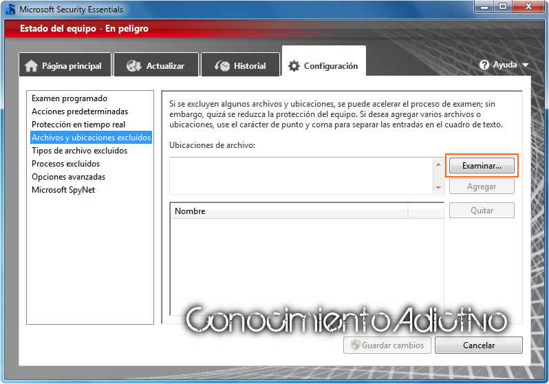 Devemos acrescentar tanto as exclusões de antivírus da seguinte forma: Abra o painel Antivírus principal (no meu caso MSE) e deixe de configuração , em seguida, os arquivos excluídos e locais .